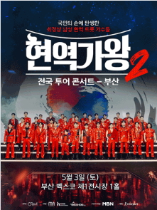 현역가왕2 TOP7을 현장에서 만나 노래로 치유받고 힐링하는 특별한 경험을 할 수 있는 좋은 기회입니다. 현역가왕2 콘서트는 사전에 티켓을 예매해야 합니다. 현역가왕2는 워낙 인기가 많아 티켓이 바로 소진되므로 아래버튼에서 예약하시기 바랍니다.